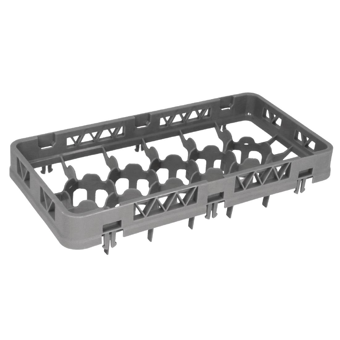 The 17 compartment Vogue Half Size Glass Rack Dropped Extender offers additional stability to glassware thanks to its drop design that covers more of the glass. This design securely holds glassware to reduce the risk of breakages, saving you money on replacing glasses. The rack extender is made from strong materials that provides a durable and reliable addition to your glassware washing equipment.