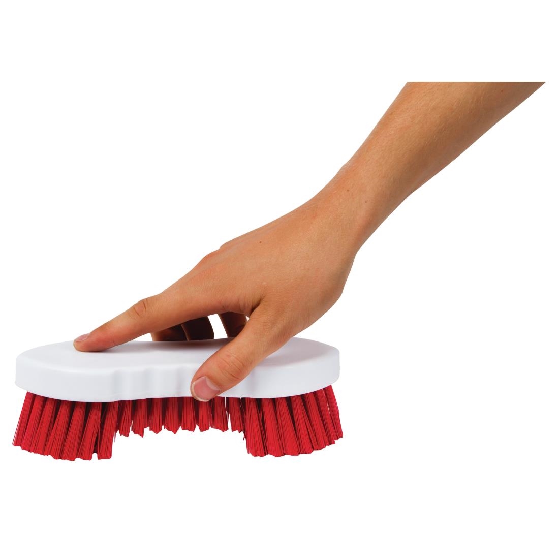 The Jantex Scrub Brush in red is made from durable and hygienic plastic with stiff bristles to remove stubborn dirt from floors, surfaces and even dishes. This handheld scrubber has ergonomic finger grooves that improve grip and comfort when cleaning and the dual length bristles ensure every groove is cleaned.