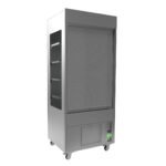 Introducing the Moffat ML2SA M-Line chilled merchandiser with lockable shutter doors, panoramic side glass, internal glass shelving and LED illumination for enhanced food display and all round visability. These sharp styled units are a perfect fit for any modern designed retail grab and go food outlet, ideal for delicatessens, restaurants, universities, schools, hospitals, supermarkets and coffee shops. The hygienic free-standing mobile design made inside and out from bright polished stainless steel provides easy access for pre packed snacks and cool drinks. Incorporating a low height cold well and 4 glass display shelves.