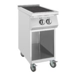 Once service is over, the unit is effortless to clean, with strong stainless steel and toughened ceramic glass construction. And thanks to the built-in stand, the hob is set to an ergonomic work height, whilst also including handy storage space below. The stand also includes handy braked castors, allowing you to reposition the unit for cleaning or maintenance.