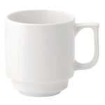 Get a classic piece of crockery for your beverages with these 280ml Utopia Pure White stacking mugs.These flawlessly white mugs are a classic of any café, coffee shop or hotel. Accredited with British Hotelware Standard BS4034, you can be assured of the high quality of the mugs for your peace of mind. Demonstrating a high resistance to water absorption, these mugs are robust and hardwearing, helping them retain their pristine quality to save you money on frequent replacements. Fully microwave and dishwasher safe too, these mugs are designed to meet the needs of any busy catering environment.The Pure White range of fully vitrified porcelain was developed in recognition of the market’s need for an effective tableware collection. Get a piece of this innovative range now.