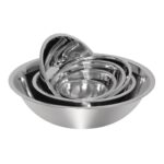Faster mixing, less mess – using this 2.2-litre mixing bowl from Vogue is guaranteed to increase your speed and efficiency during food prep. Designed with a large flat base, the bowl is incredibly stable on your work surface and keeps you in complete control at all times. This allows you to mix or beat your ingredients quickly without spilling them. Made from premium stainless steel, the bowl has the commercial strength and reliability required to excel in a professional kitchen. It’s fully stackable too, helping you make the most of your storage space.