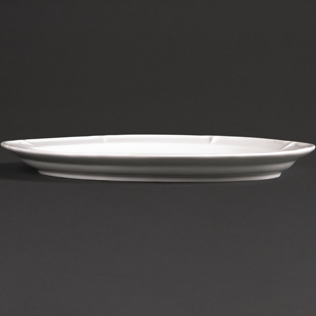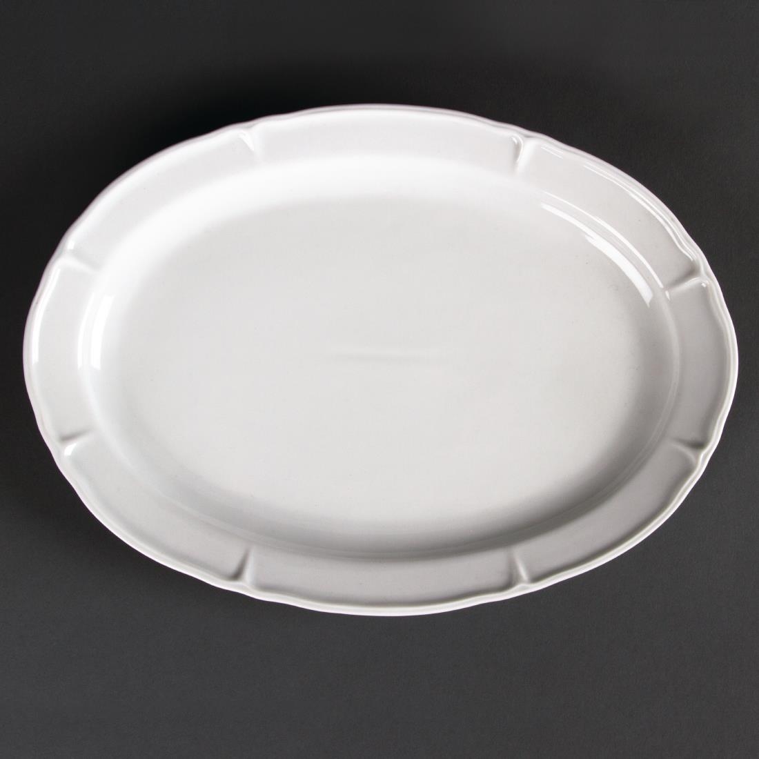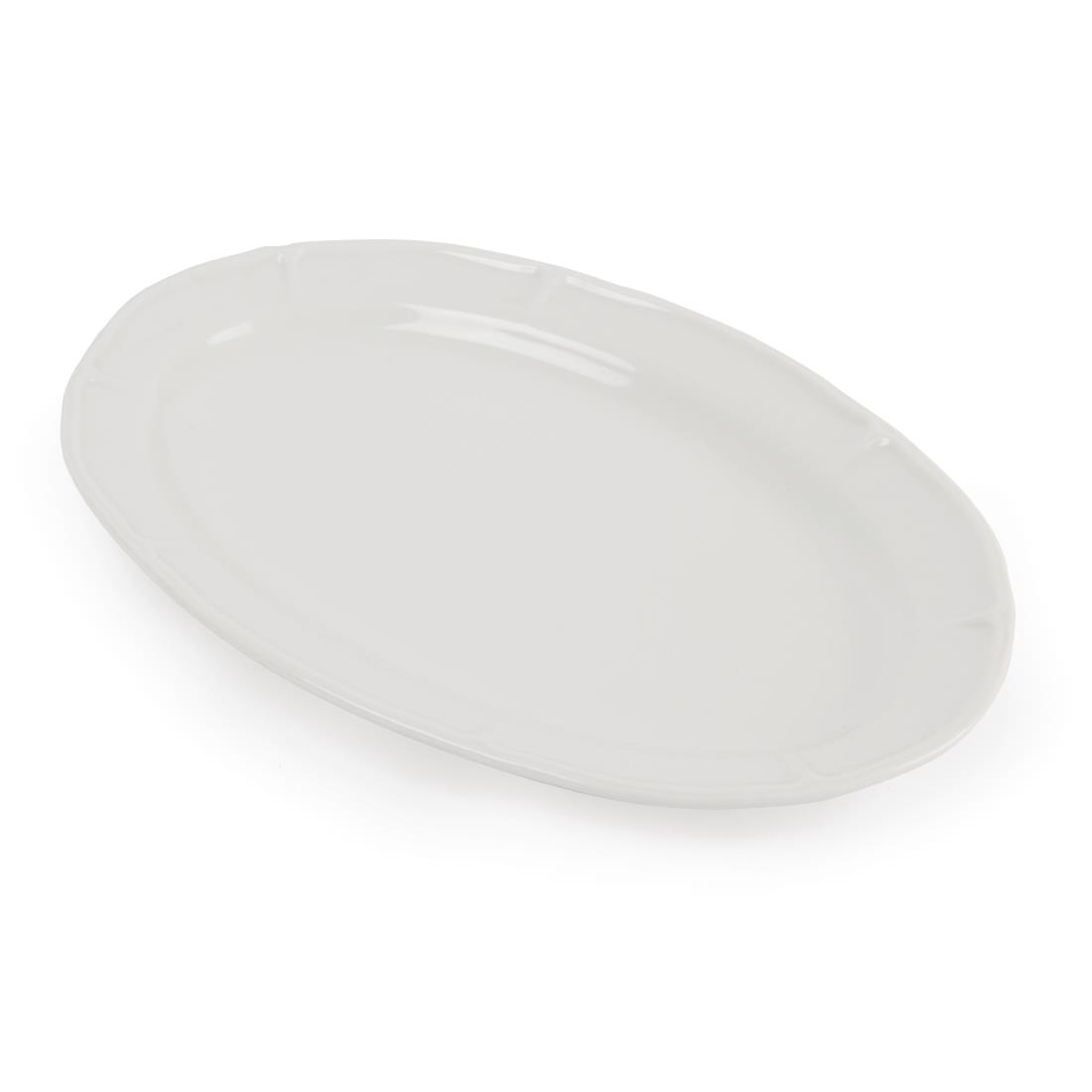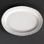 This delicate Rosa range by Olympia is subtly and delicately embossed in a traditional style, ideal to use every day in hotels, guest houses and tea rooms. These oval shaped plates are fully vitrified to ensure the long life of the glaze and have rolled edges to help prevent any chips.Need advice on choosing the right size? See the size guide below for more information.