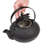 A beautiful and unique looking oriental styled hobnail teapot in black porcelain. This teapot includes an infuser and is the ideal product for oriental fine dining establishment. As an attractive and lightweight alternative to cast iron oriental teapots, this beverage pot is also less likely to cause burns or scalds to customers or staff.