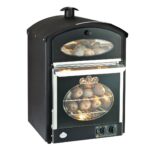 Made from the same high quality materials as the larger King Edward models, the Bake King Mini Oven in black is able to quickly and easily cook up to 25 jacket potatoes, whilst storing up to 25 more in the storage and display area at the top. Incredibly efficient, the oven uses a simple 13A plug for power, yet still cooks potatoes within 60 minutes. The customer facing side of the oven features a handy menu glass, allowing you to attractively merchandise potatoes or other menu items as required.