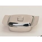 Stylishly serve your butters and spreads, with this butter dish and lid.Crafted from pristine stainless steel, this butter dish is a charming and sophisticated way to serve your butter. It’s the stylish alternative to individual paper packets of butter, which your guests will appreciate and admire. While being very attractive, the stainless steel of the dish is also very robust and durable to resist dents and warping, which ensures the dish’s long life and limits your need to buy replacements. The lid, with a delightful little handle, also ensures the butter’s freshness and adds an extra element of style to the dish. As soon as possible after using the dish, you should remove any excess food to prevent salts and acids from corroding the steel. In order to keep its shiny and pristine appearance, this item should be cleaned in a dishwasher; and once the washing cycle has ended, it should be quickly removed and hand dried.This butter dish offers a very attractive way to serve butter.
