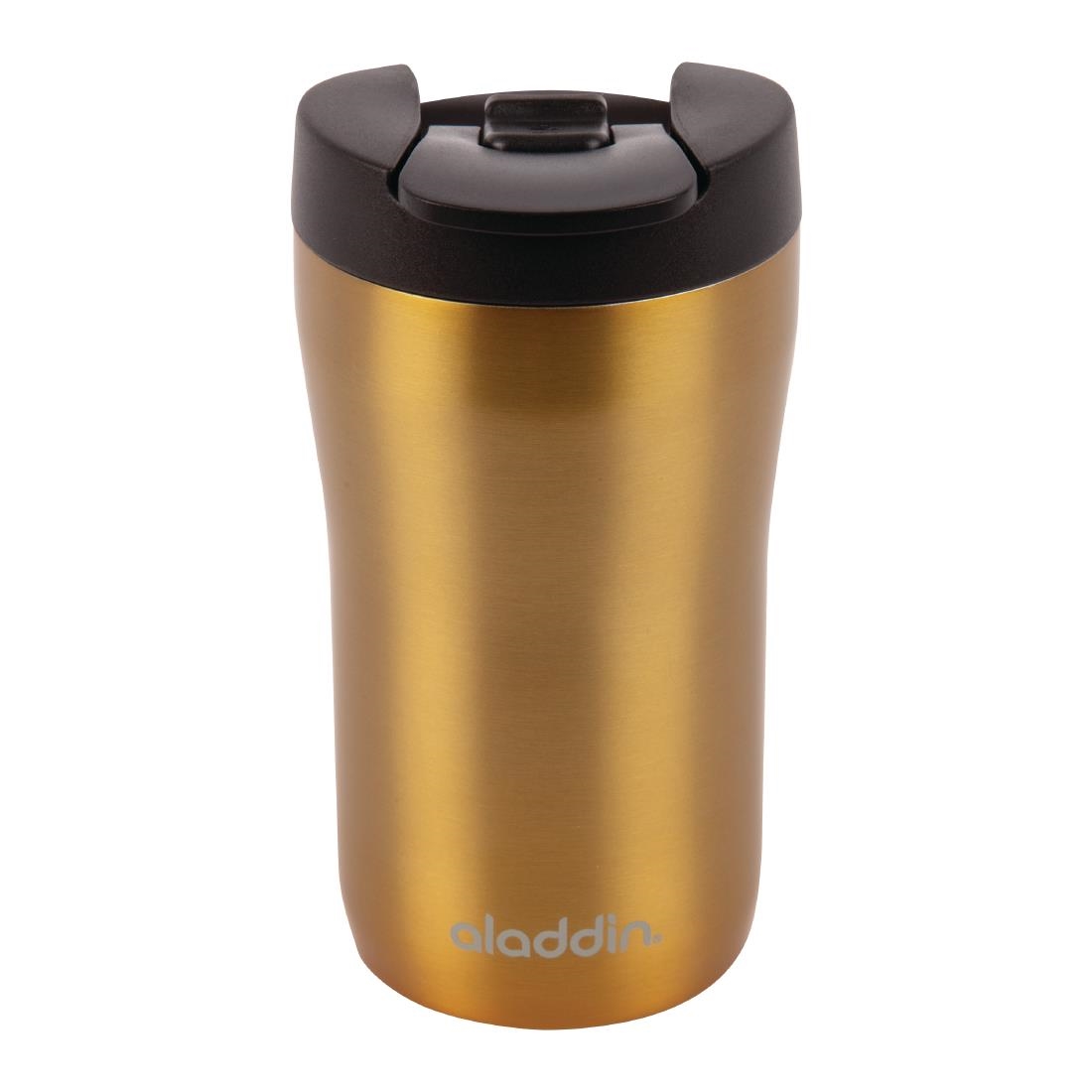 Help customers take their next steps to a more sustainable lifestyle by offering them this reusable travel mug from Aladdin. The mug can be used time-and-time again and will help to cut the amount of single-use waste your customers produce. This mug is made with a locking lid and spout that helps to keep drinks hot for longer periods of time, whilst reducing the risk of spillages. When opened, the lid allows for fast and easy drinking, whilst the raised lip prevents excess drinks from spilling – ideal for those on-the-go. The outside of the mug is constructed from stainless steel, making it highly robust and easy to clean.You can encourage purchases by offering customers a discount when they re-use the mug within your business. This can help to enhance customer loyalty and improve sales through repeat visitors.