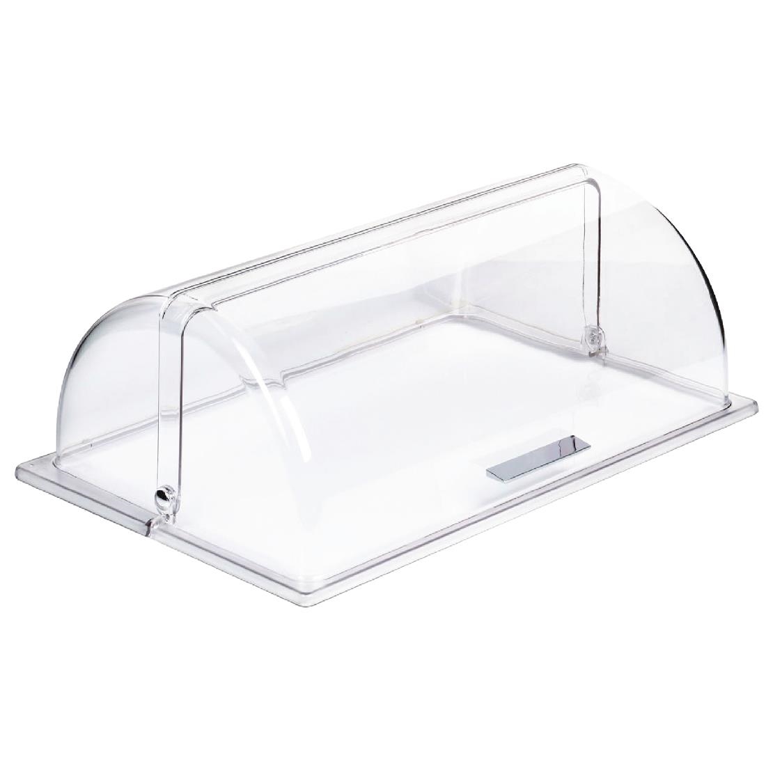 Frames Buffet System by APS is an innovative and modular system allowing you to completely mix and match pieces to suit your establishments needs. This plastic 1/1 gastronorm rolltop cover fits perfectly ontop of the stainless steel platters, sold separately, keeping the food items covered but still visible to customers, and fresher for longer.