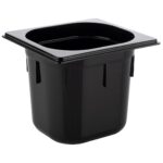 Made from black polycarbonate, this APS Gastronorm 1/6 container can be used for serving and storing food. Its 2.2-litre capacity makes it ideal for chafing dishes, steam cookers, bain maries, saladettes and food warmers. Adding to its convenience, this Gastronorm container is dishwasher safe and designed for easy stacking.