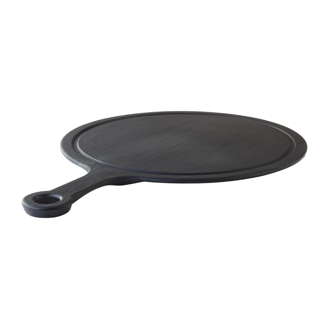 Whether you want to serve homemade flatbreads or stone baked pizzas, these melamine serving platters from APS will be perfect for you. The melamine imitates the look of real slate but requires none of the care that real slate needs. The material is virtually unbreakable, scratch and chip resistant and it can be cleaned in your commercial dishwasher.