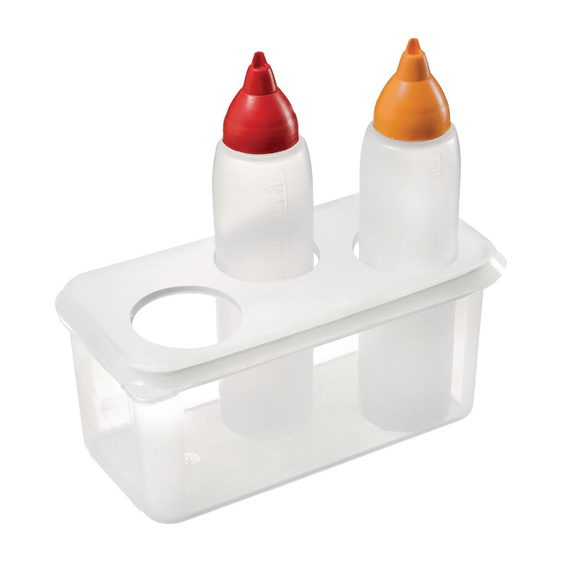 This organiser is the perfect way to store your sauce bottles during service, offering three separate compartments to help keep food preparation areas neat and tidy. This can also be used with ice cubes or hot water to keep your sauces, oils and dressings at the perfect temerature. *Includes free Araven sauce bottle 35 oz (code CW123).