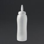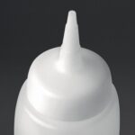 Improve your presentation with the Araven 750ml clear sauce bottle. Designed with a continuous line nozzle, the bottle helps you apply precise doses of sauce to create impeccably arranged dishes. The nozzle can also be cut to achieve different thicknesses to give you more control over your presentation. Microwave safe, the bottle can store hot and cold sauces to give you more choice when it comes to presenting your meals. Finished with ml and oz measurements, the bottle also helps you control your portions effectively.Working temperature range: from -40°C to 90°C. Measuring scales in ml/oz.