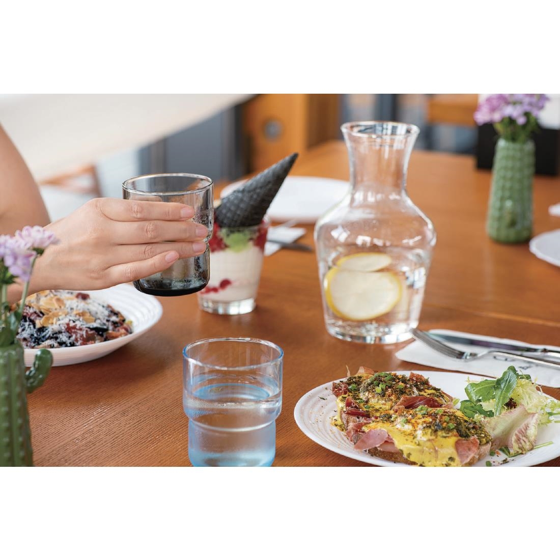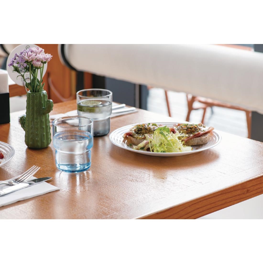 Add a burst of colour to your drinks service with these vibrant tumblers from Arcoroc’s Log Brush collection. Crafted from durable, fully tempered glass, they effortlessly combine simplicity, functionality and Scandinavian style. Thanks to Arcoroc’s expertise, the sprayed-on colour remains vibrant even after more than 2,000 industrial dishwasher cycles. Each glass is designed to stack perfectly, making storage easy. Mix and match the colours or choose one that complements your interior for a striking effect.