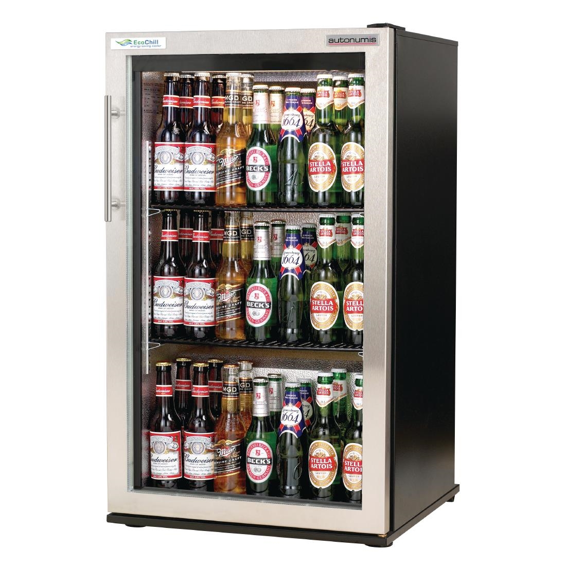 Attractive and reliable, the Autonumis EcoChill single door back bar bottle cooler in black with stainless steel door is a highly efficient yet powerful beer fridge able to chill large quantities of bottles whilst using around 30% less energy than equivalent models. The fully adjustable shelving and efficient LED lighting allows you to merchandise beers, ciders and soft drinks perfectly, whilst the foam insulated exterior and high efficiency compressor ensures that bottles are chilled quickly and remain cool, even when the doors are opened regularly. Useable capacity 110 litres.