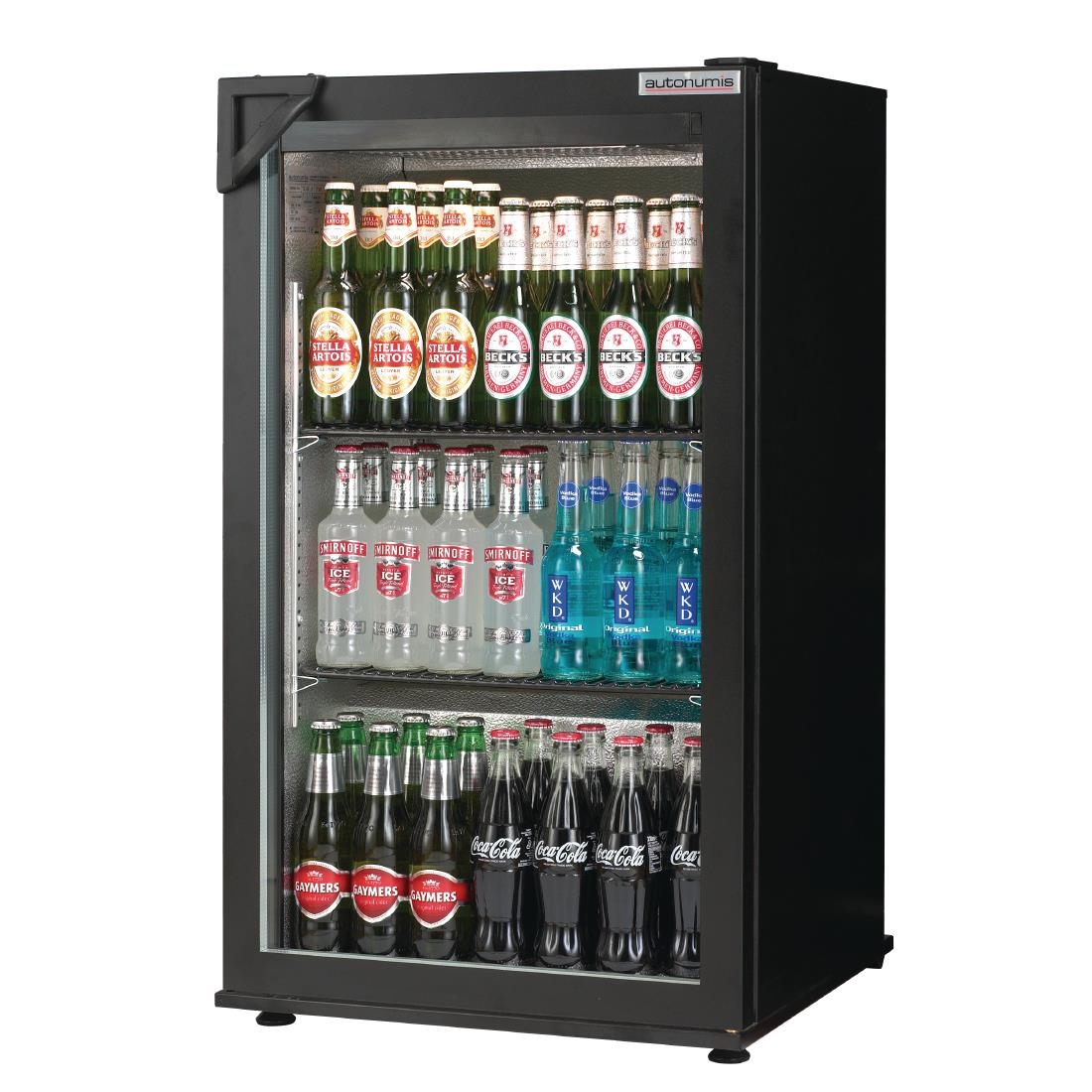 Efficient and reliable, the Autonumis Popular back bar cooler (single door) in black provides the ideal solution for the attractive merchandising of bottled drinks such as beer, cider and soft drinks. With three robust shelves, up to three layers of bottles can be stored whilst being illuminated by modern and efficient LED lighting. The adjustable thermostat and fan circulated refrigeration ensures that bottles are kept at the required temperature, even when the door is being opened regularly in busy environments. Useable capacity 110 litres.