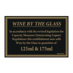 Clearly communicate compliance with laws around serving wine by 125ml and 175ml measures with this highly visible sign from Beaumont. The black board with gold letter design is easy to read, whilst still having a subtle, elegant style. Easy to apply.