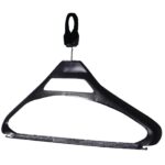 The black polypropylene security hangers are designed for use in public areas, attached securely to the hanging rail with a simple to ease snap on hook, for a safe and secure hanging solution. Supplied in packs of 100, these hangers are secure and practical, allowing you to store tops, jackets and trousers on them thanks to its versatile design.