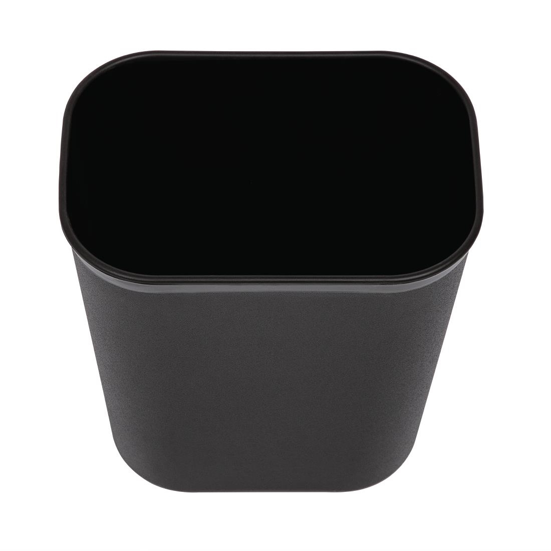Conforming to fire safety standards, this black Hotel Room Bin from Bolero is safe, practical and reliable. The 12 litre capacity holds enough waste for hotel rooms, bedroom, bathrooms and even around the home, making it suitable for use in domestic and commercial areas. This robust waste bin is made from strong polypropylene that will not chip or dent.