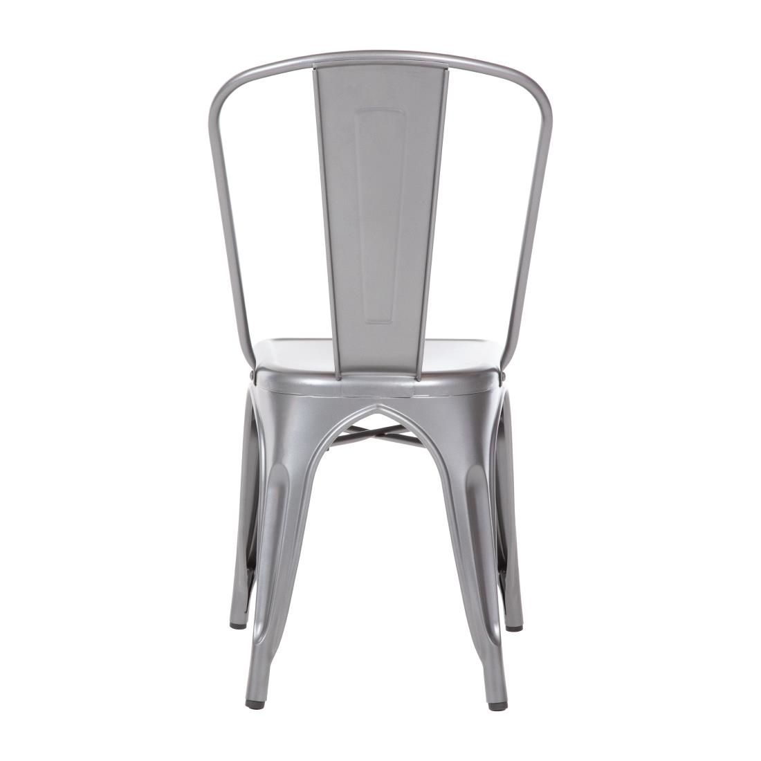 Style, strength and practicality – find the perfect blend of all three with Bolero. Tapping effortlessly in to the industrial trend’s raw, metallic look, the Bistro Side Chair is ideal for everything from quirky coffee shops to pubs with an urban edge. Not just stylish but strong too, the powder-coated steel design means it’s durable enough for everyday heavy use in the busiest venues, and can even be used outside.Easy to transport and store thanks to a lightweight, stackable design – ideal for when your floors need a clean, or for quickly and easily packing up when the night’s done. The rubber non-slip feet add the finishing touch and help to keep guests safe, making it as sturdy on a wet patio as it is on a high-polished wooden floor.