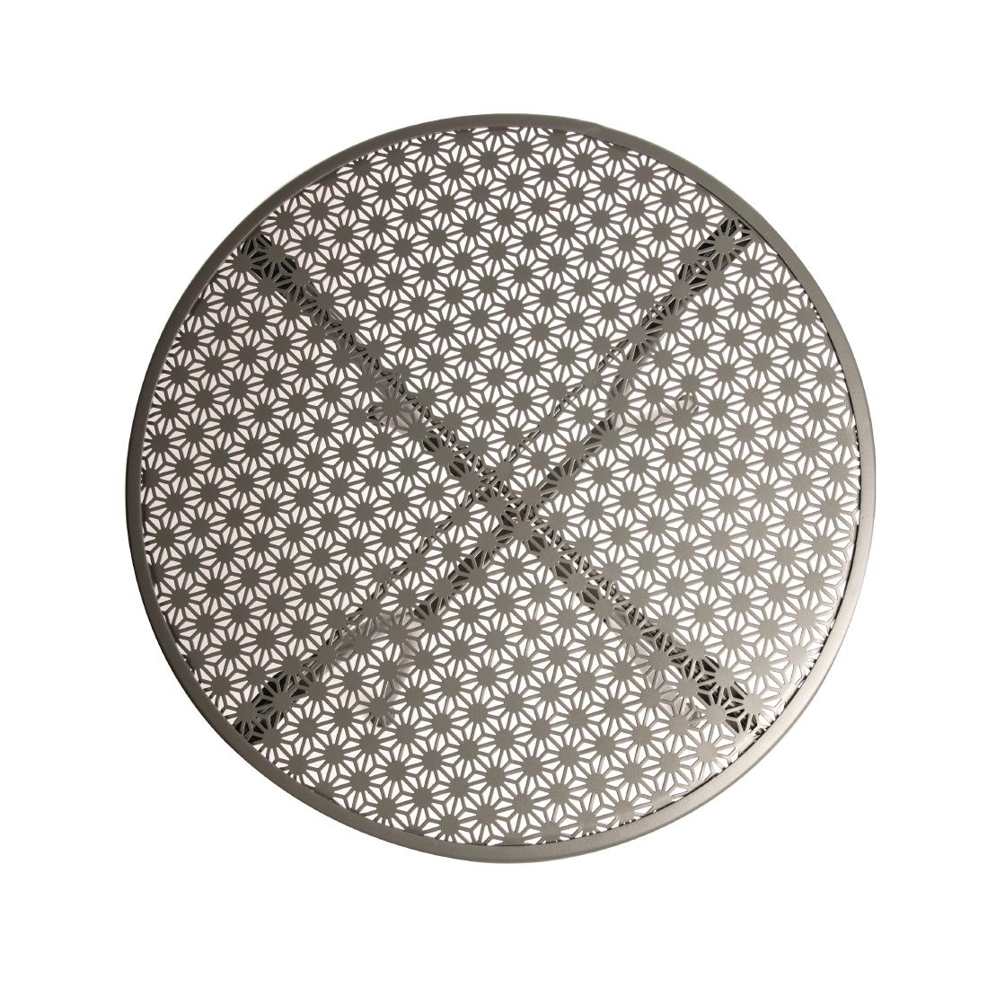 This hard wearing, stylish round bistro table from Bolero features an attractive patterned effect and neutral grey colour which is easy to match with its surroundings. The large surface area allows ample room for food and drinks, while the steel construction makes for a weather resistant and easy to clean table. Ideal for outside areas such as beer gardens and terraces but equally useful indoors when needed.