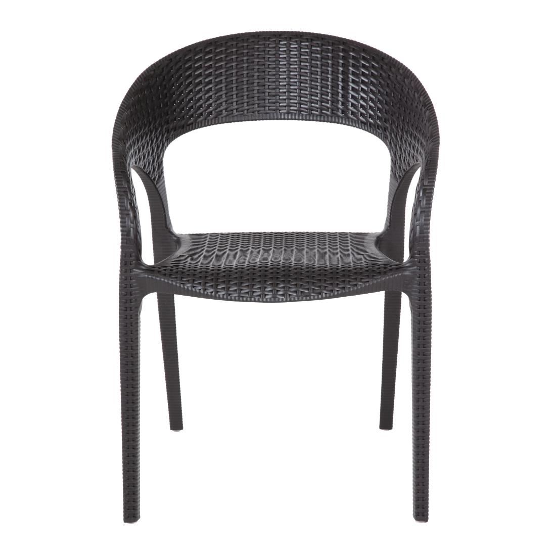 Comfortable and stylish – what more could you want from this pack of 4 bistro side chairs from Bolero? The chairs are crafted from a polypropylene-rattan material that is not only durable enough to handle regular use, but is designed for both indoor and outdoor seating areas – giving you long-lasting furniture that can be used no matter the season. Boasting an understated, yet bold brown colourway, these chairs help to spruce-up your seating areas and create an inviting space for guests to sit and enjoy. The wraparound construction provides excellent comfort and stability to keep guests happy and seated.The lightweight, stackable construction allows staff to quickly set-up and pack-away your outdoor spaces, whilst saving you vital storage space when stacked up to 8-high.