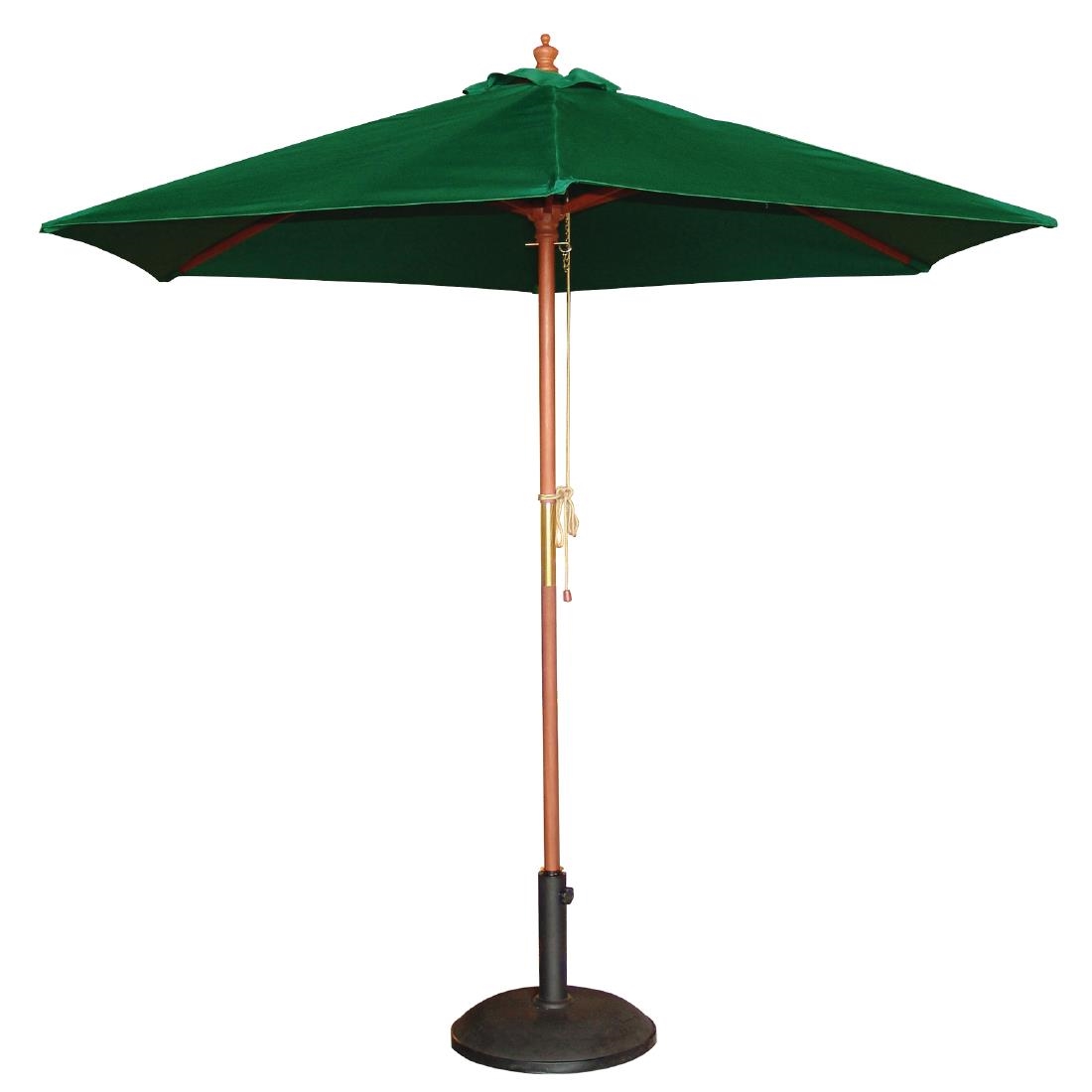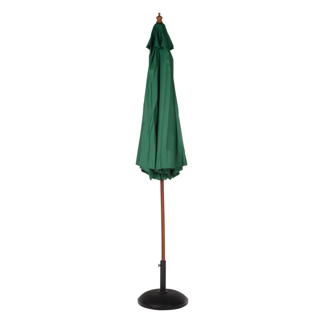 Want to make the most of your outdoor areas? Then this 3(Ø)m green parasol from Bolero is perfect for you. The parasol features a 245gsm, water-repellent polyester canopy that is designed to protect guests from both rain and sunshine. This allows visitors to comfortably utilise your beer garden, patio or outdoor seating area in all weather conditions. The green colourway, paired with a wooden mast give the parasol a stylish and premium appearance. This makes it ideal for enhancing the look of your outdoor areas.Designed with an easy-to-use pulley system, the parasol can be set up and put away in no time. This allows staff to prepare your outside area quickly, ready for customers to enjoy.Please note that bases are sold separately.