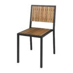 Supplied fully assembled, this charming steel and acacia wood side chair is a superb pick to reinvent your commercial dining venue. Simple in style, the wooden stackable side chair is functional and immediately fashionable in any hospitality setting. A handsome contrast design of light acacia wood and strong matt black steel adds an urban, modern touch to your interior that is versatile for pairing with traditional wooden furniture or bolder solid colours. For your convenience the charming wooden panels featured in the chair come pre-oiled for durability, and can be maintained easily with Teak Oil (search DL476 on site). The metal frame has been coated for robust commercial use both indoors and outdoors thanks to a high-resistance to rust and corrosion. The lightweight construction of these chairs makes them easy to move and store – allowing for fast set-up and packing-away before and after services, saving staff time.