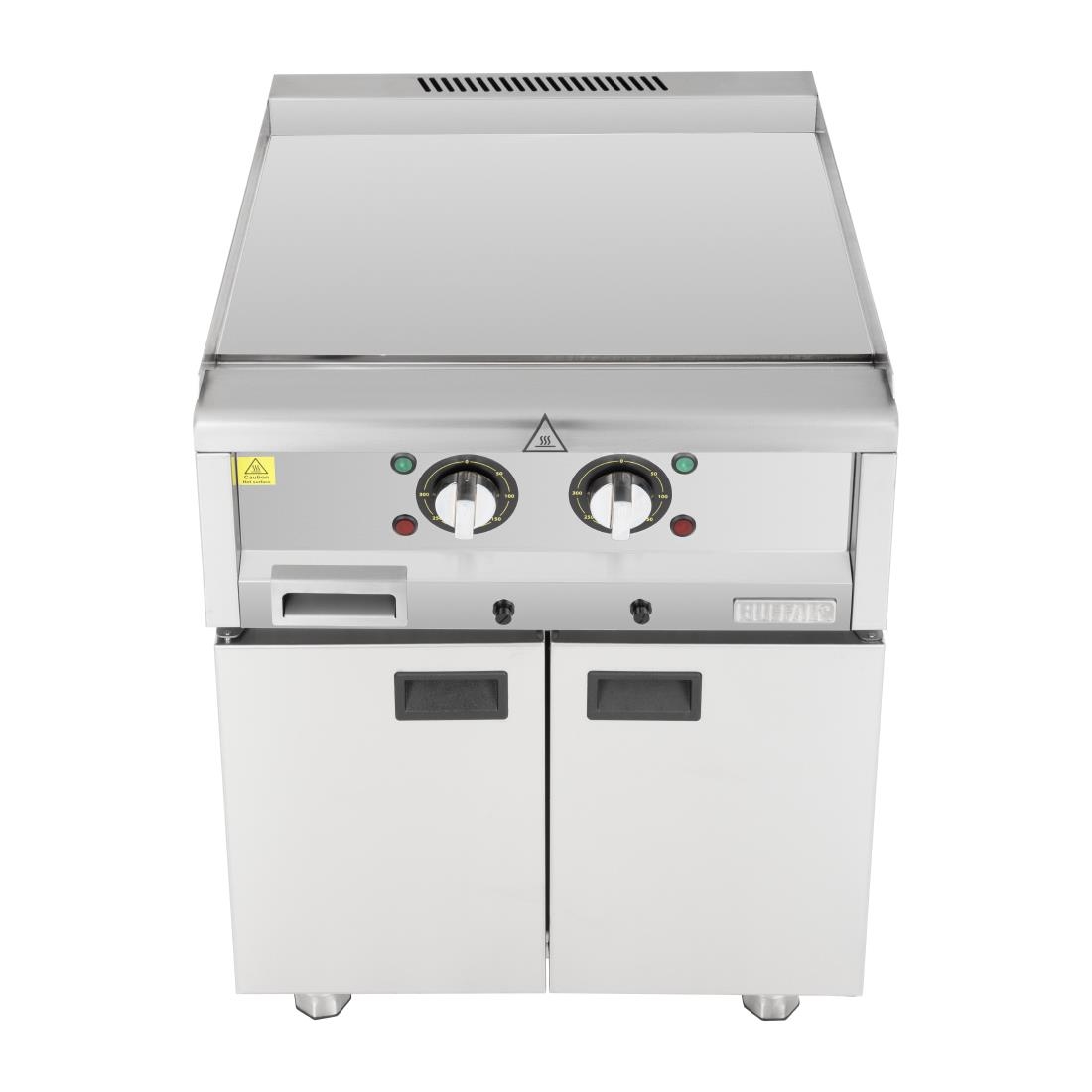 Powerful and versatile, the Buffalo 600 Series dual zone electric griddle provides a flexible cooking surface for your breakfast, lunch and dinner services. With its 10mm thick mild steel plate and powerful 4.5kW elements, the griddle powers up quickly and distributes heat rapidly throughout each cooking zone – essential for consistent results every time.