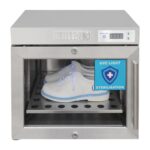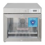 Promote your hygiene control with the Buffalo UVC Steriliser Cabinet. Compact and efficient, the Buffalo uses proven UVC lighting to quickly and effectively sterilise the contents – whether that’s hotel room keys, glasses, cutlery, utensils, mobile phones, HHTs or crockery. No harsh chemicals or temperatures are required – just the UVC lights and a short amount of time.Operation really couldn’t be easier or safer – just place the items in the cabinet, close the door and set the timer. The steriliser quickly gets to work, destroying microorganisms such as bacteria which are known to cause the spread of infections. The process is very simple, as the cabinet acts like a powerful germicidal chamber, focusing powerful UVC light at a specific wavelength (around 254nm) which deactivates bacteria and viruses. Once complete, the unit displays a clear green “ok” signal, meaning the contents have been sterilised and are ready for their next use. Even combined loads can be put into the steriliser, so you can treat cutlery and glassware at the same time.This stylish steriliser is designed for countertop use and is perfect for installing in customer facing areas – ideal if you want to highlight the measures you are taking to combat viruses and bacterial infections.