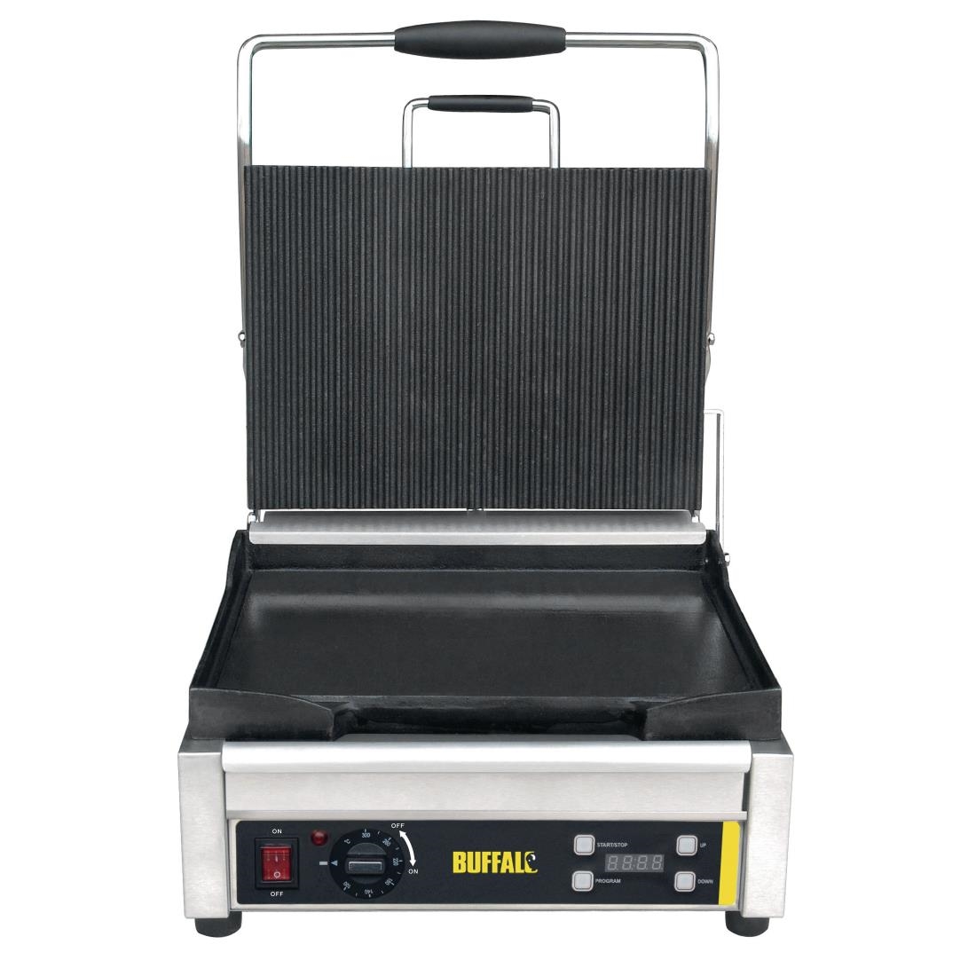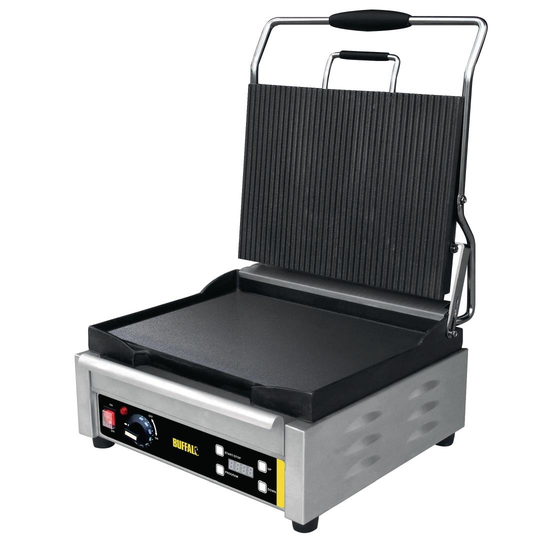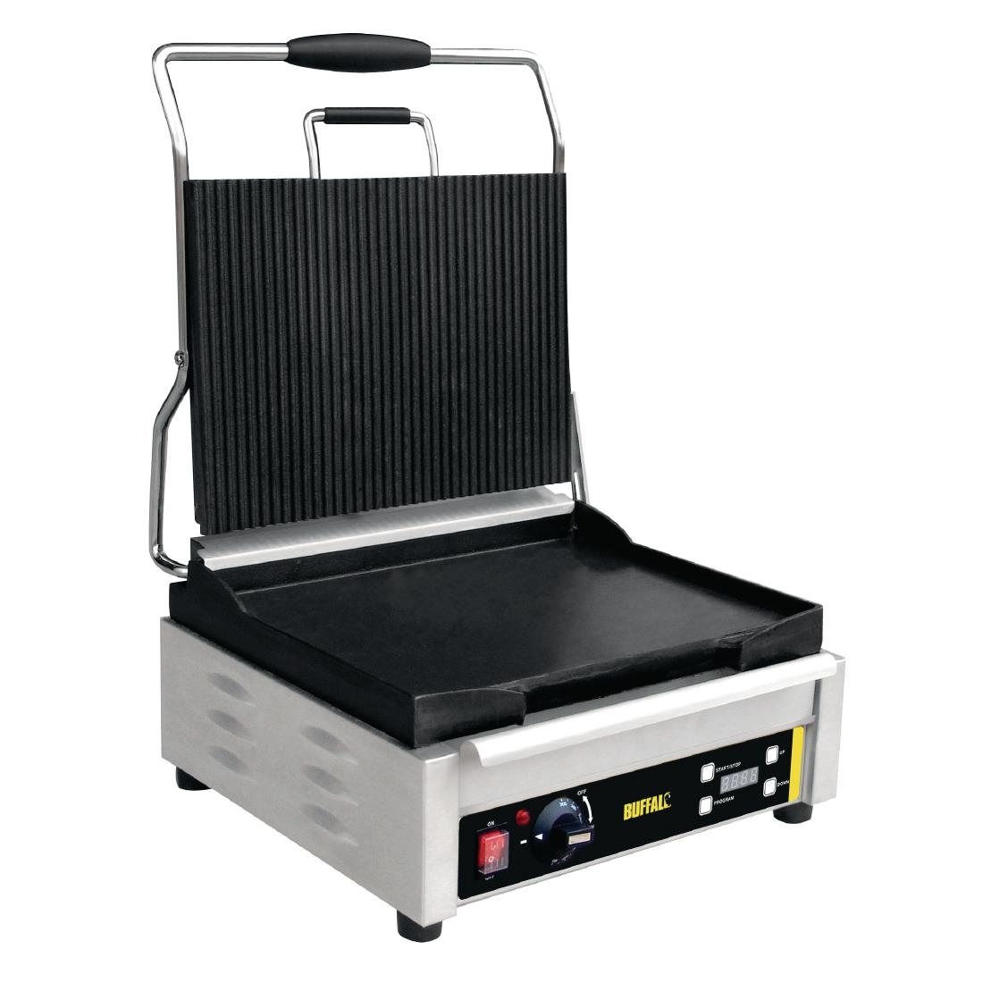 Power: 2.2kW. Single grill. Ribbed top & flat base plate