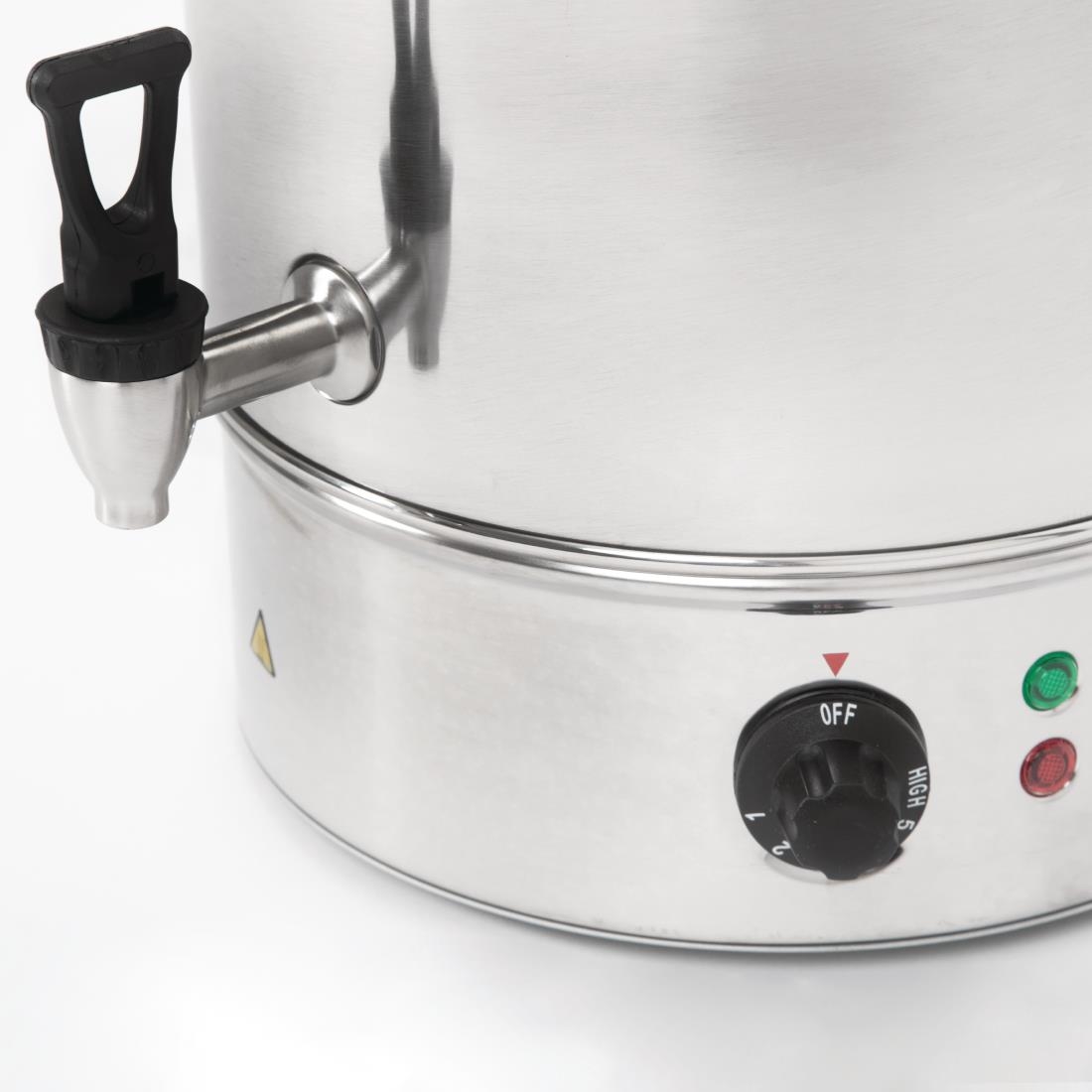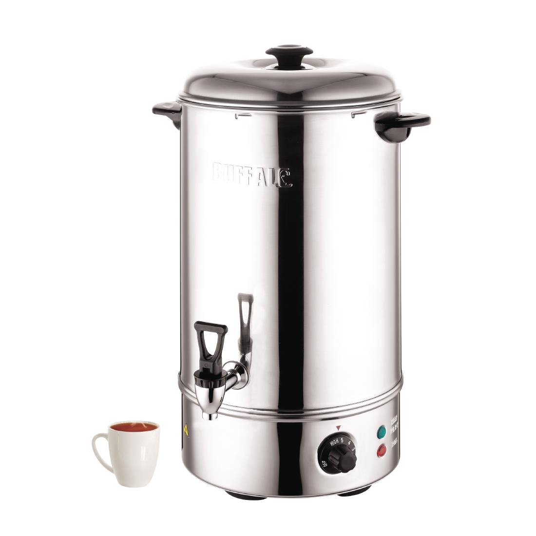 Powerful and versatile, the Buffalo 20Ltr manual fill water boiler is ideal for mobile caterers, B&Bs, guesthouses, village halls, offices and staff rooms. Perfect for breakfast service where access to water is limited, the boiler is reliable and portable – and features fully-welded stainless steel construction with an easy-clean concealed 2.6kW element.The control dial allows the temperature to be regulated for specialist drinks and the non-drip tap is strong and durable enough to withstand daily use in any busy professional setting.Please Note: The two-year warranty is only valid for purchases from 01/03/2021.