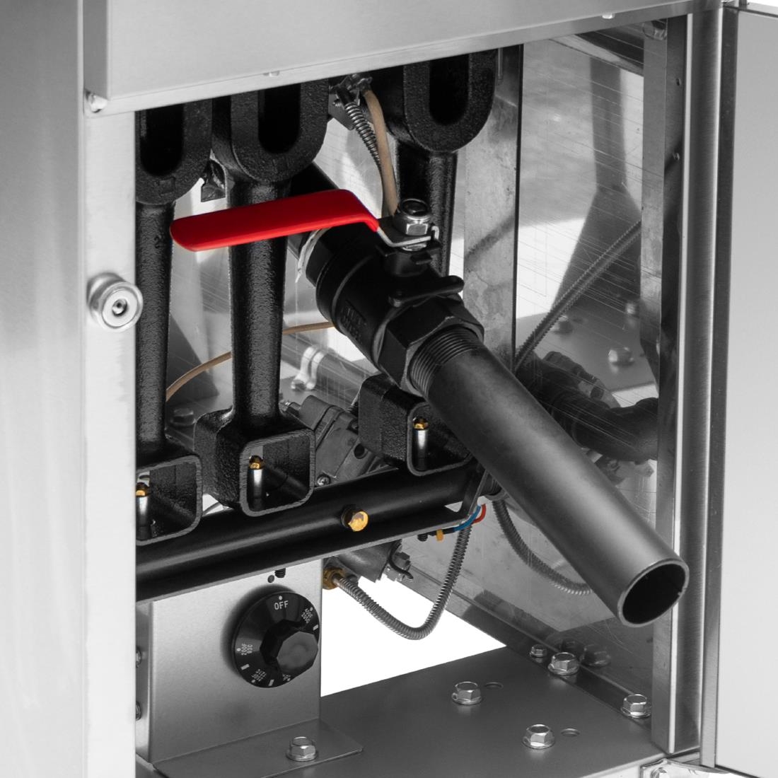 - 3 powerful vertical cast iron burners (3×30,000 BTU/hr)