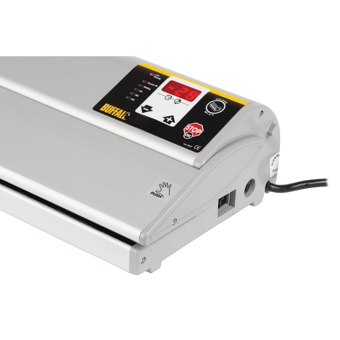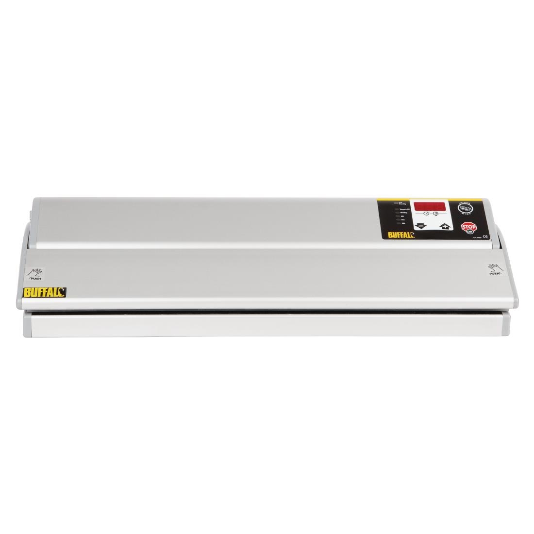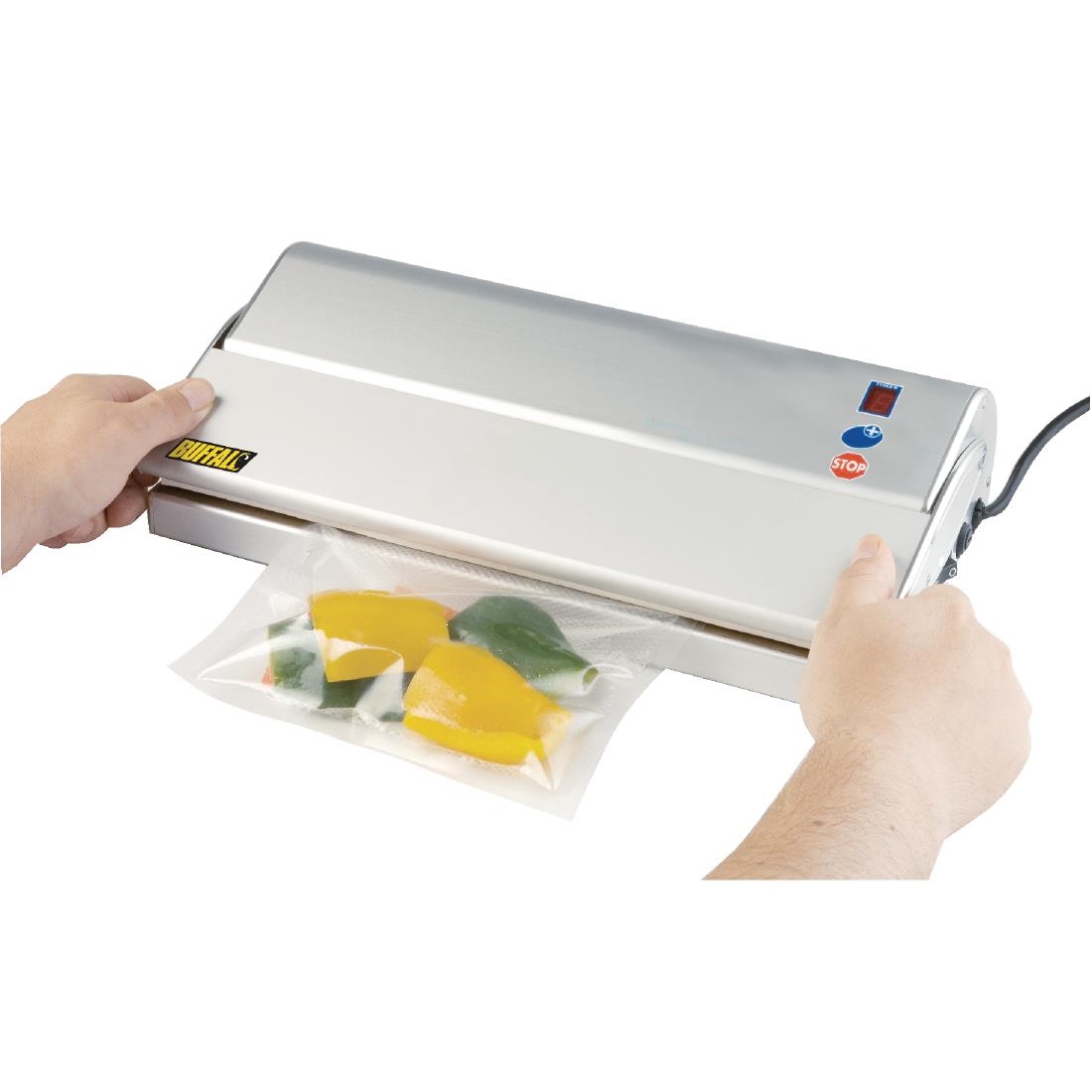 The Buffalo vacuum packing machine helps you to save money and reduce waste by extending the lifespan of food. Able to quickly seal embossed bags (only) up to 400mm wide, the unit helps you to prep food in advance of freezing, sous vide, microwaving or boiling. The Buffalo is incredibly easy to use and includes 5 customisable vacuuming modes for maximum flexibility – whilst also being able to stop and seal at any time. A superb choice for professional use.Please note: compatible with embossed vacuum pack bags only. Please see the accessories tab below.