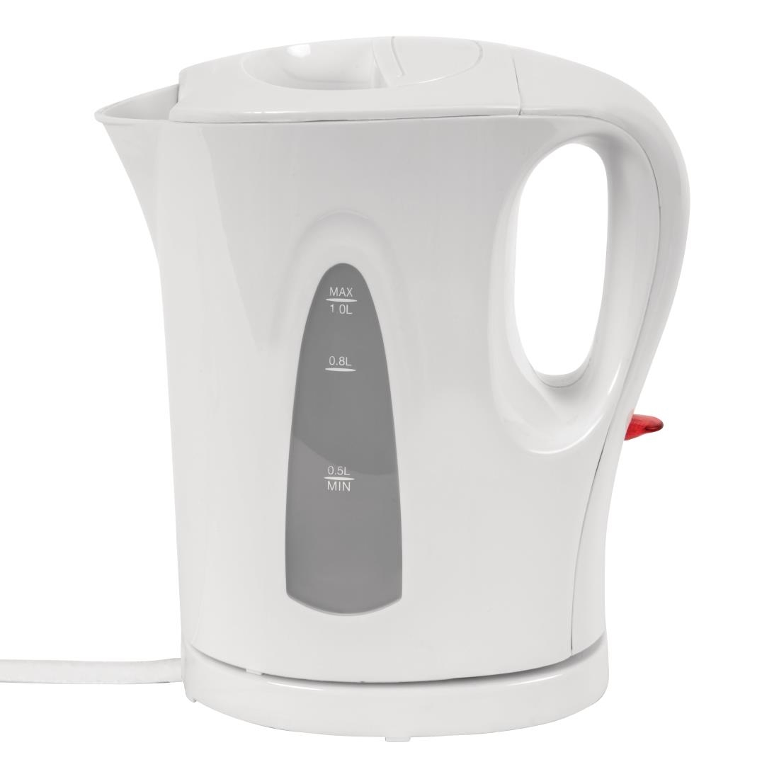 The white Caterlite hotel room kettle is the perfect size for a quick brew, with a space-saving design allowing it to be tucked away in a drawer or cupboard when not in use.