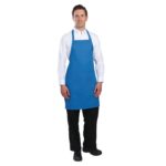 This brightly coloured and practical Chef Works bib apron with pockets in blue comes with adjustable neck buckles which can lengthen or shorten to ensure a perfect fit for any stature. This apron features a reinforced bib front and reinforced seams along the pressure points for great durability, as well as a protective treatment which ensures stains wash out easily.