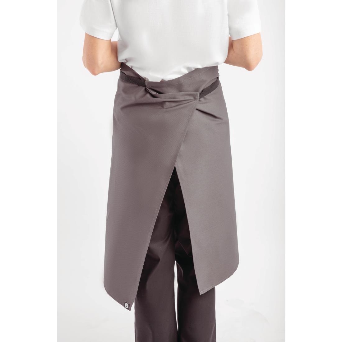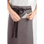 Durable and stylish high quality polycotton regular bistro waist apron in charcoal, perfect for waiters and waitresses, featuring a user friendly patch pocket on the front.