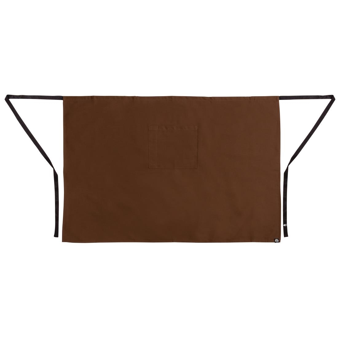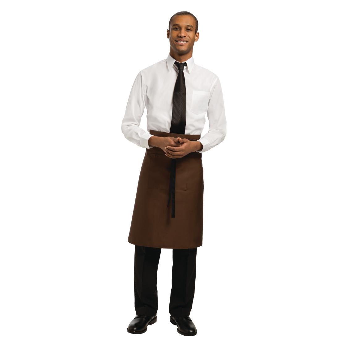 Durable and stylish high quality polycotton regular bistro waist apron in chocolate, perfect for waiters and waitresses, featuring a user friendly patch pocket on the front.