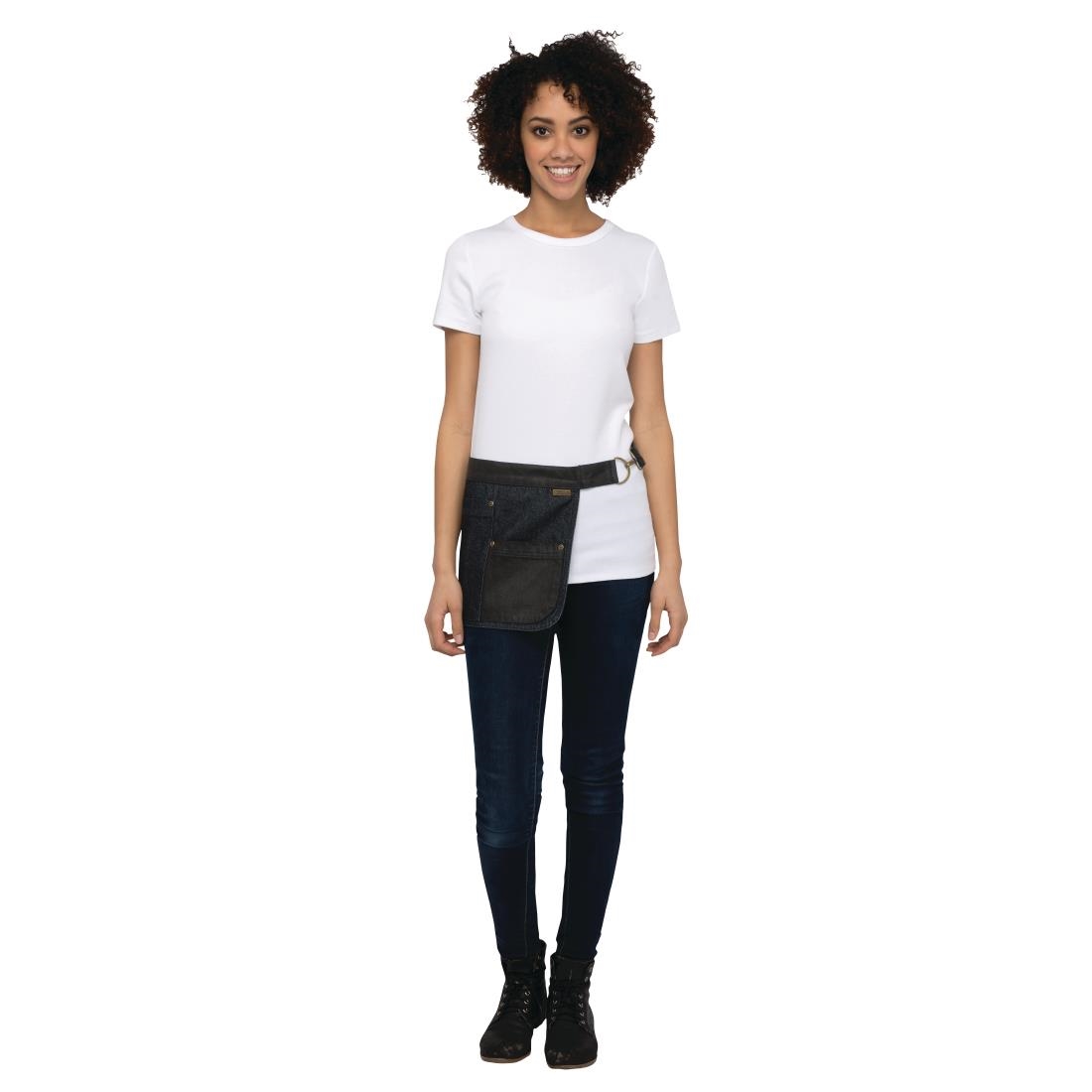 Add an edge to your uniform branding and stand out from the competition with Chef Works Urban Indy Hipster apron in navy-black denim. Characterised by rounded edges, a fashionable D-ring metallic belt insert to break up the dark fabric, and a side-wearing style that offers flexibility of movement the Hipster apron combines the best of modern commercial apron design. Similar in shape to a skilled tradesman’s tool belt, accessible pockets offer plenty of storage for everything from card machines to cork screws and petty cash. To top off the design, the dark denim wash adds an effortlessly cool edge which pairs well with a range of fabrics and fits easily to pre-existing staff uniforms.