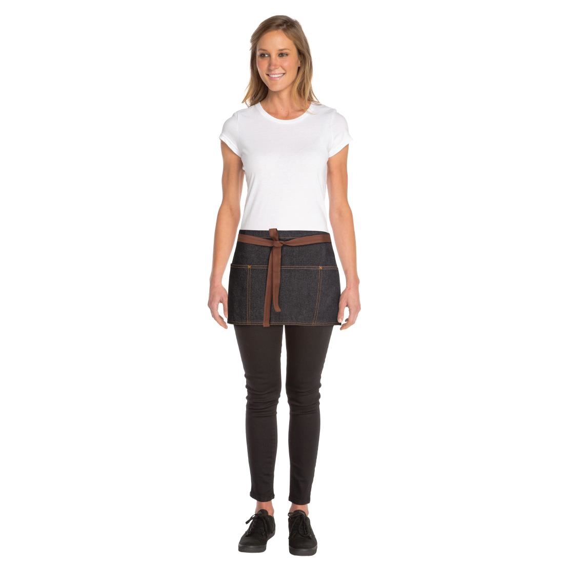 The Chef Works Memphis Waist Apron features three front pockets that give you the essential storage space needed when working in fast-paced and demanding catering environments, giving you easy-access to pens, notepads, phones and more. A tough cotton fabric construction makes the apron extremely durable whilst remaining easy to clean, giving it a long life and making it perfect for use in cafes, bars, restaurants and more. Contrast tape ties and stitching finish of the apron with an eye-catching and stylish look, giving you and your staff a head-turning style.