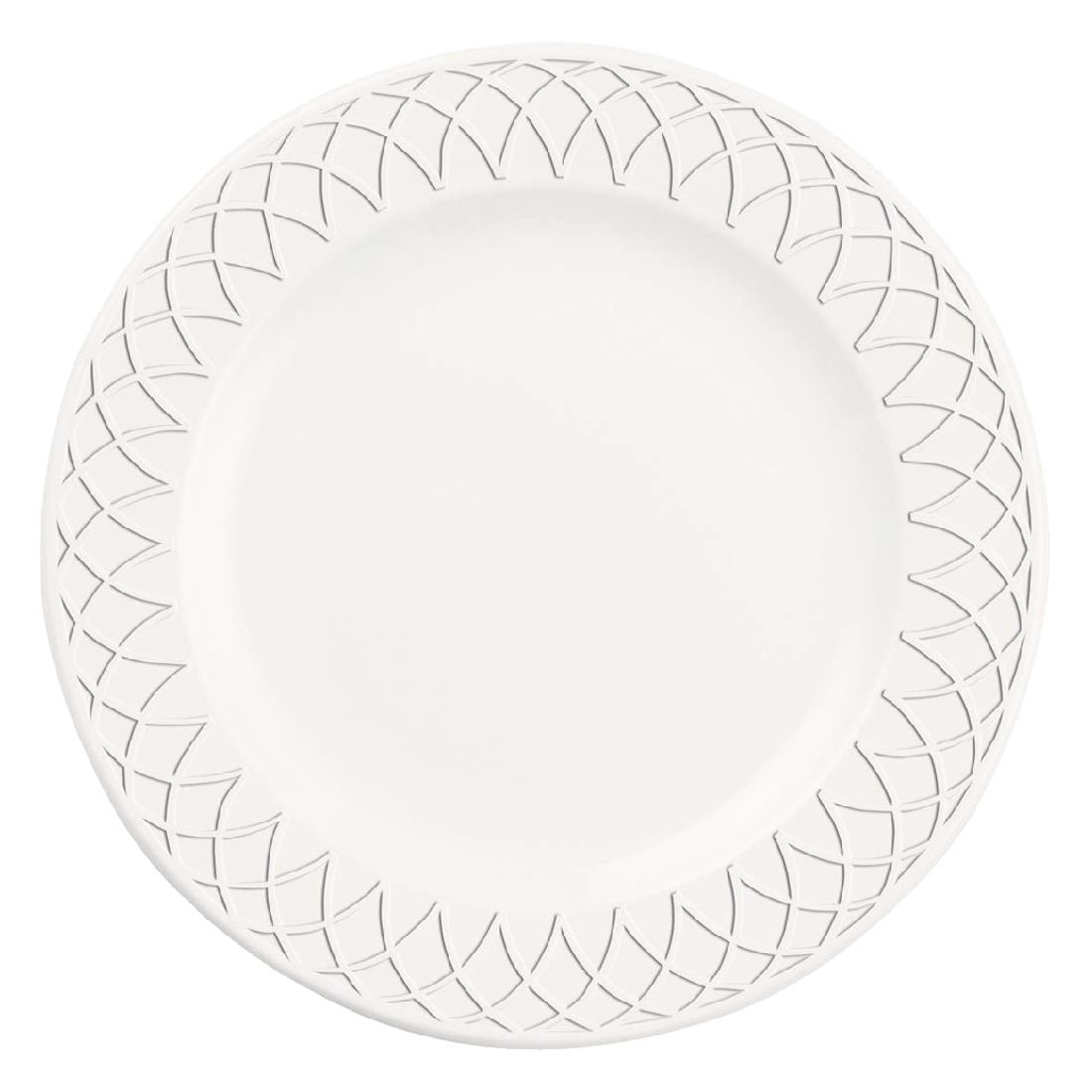 A fine china 11 ⅘” dinner plate from the Jardin collection by Churchill, which embodies a timeless appeal, enhanced by classic design. The delicate embossed border reflects the elegant arches of windows and brings a sophisticated ambience to the dining experience. The plate is ideal for all types of professional catering environments as the high alumina content of the china gives it maximum strength. Coupled with a superior glaze which is resistant to the erosion caused by dishwashing and damage caused by cutlery and a chip resistant rolled edge, Jardin crockery can withstand the rigours of daily use and will stand the test of time.Need advice on choosing the right size? See the size guide below for more information.