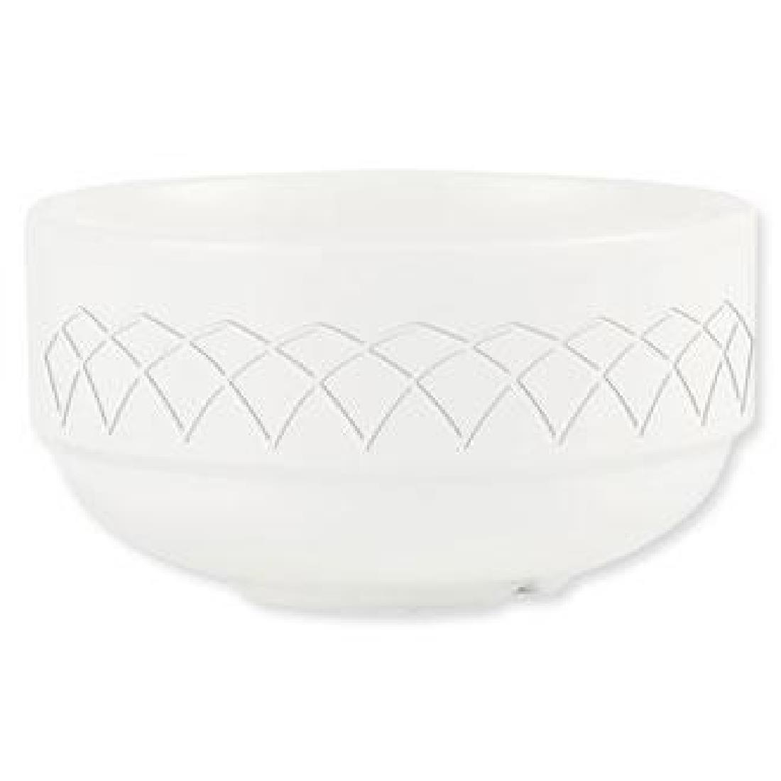 A fine china 275ml consommé bowl, without handles, from the Jardin collection by Churchill, which embodies a timeless appeal, enhanced by classic design. The delicate embossed border reflects the elegant arches of windows and brings a sophisticated ambience to the dining experience. The bowl is ideal for all types of professional catering environments as the high alumina content of the china gives it maximum strength. Coupled with a superior glaze which is resistant to the erosion caused by dishwashing and damage caused by cutlery and a chip resistant rolled edge, Jardin crockery can withstand the rigours of daily use and will stand the test of time.