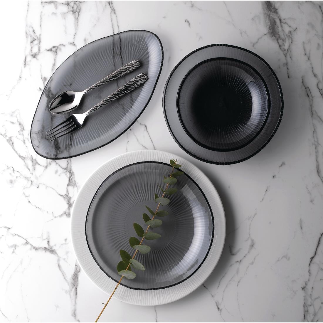 A fresh alternative to traditional crockery, the Bamboo Glass Plate is ideal for dishes with a difference. Finished in a smoky grey, and featuring the embossed line pattern that makes the Bamboo collection so striking, it’s at once sophisticated yet daringly different. Perfect for pairing with other crockery pieces for a fresh way to serve up everything from starters to mains, or for using alone as a platform for those show-stopping dishes, this is tableware that’s made to impress. Pair with cutlery from the Bamboo collection – featuring the same statement lined finish – to complete the look.