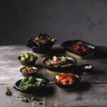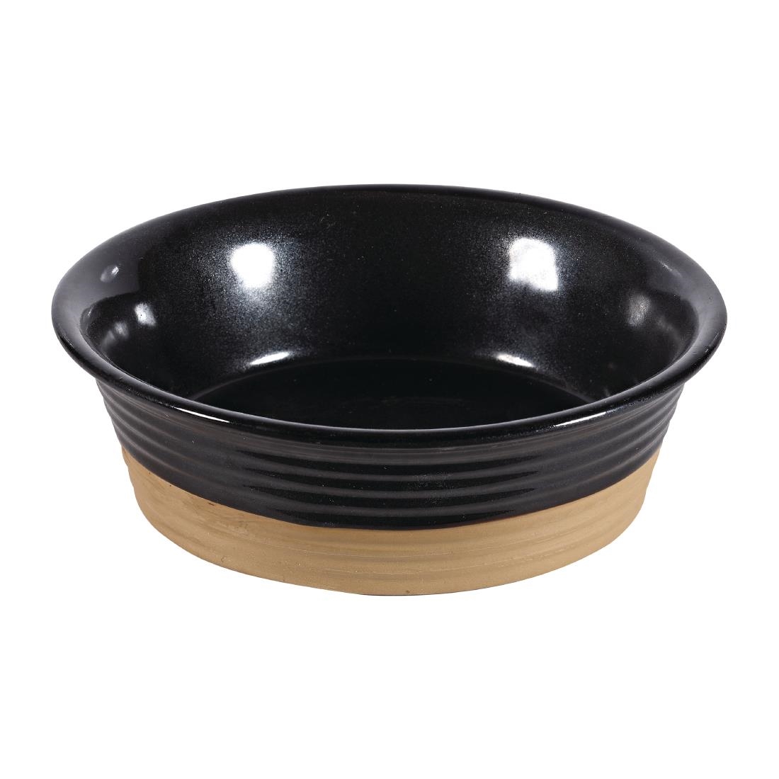 Give your hearty pies a striking backdrop with the Black Igneous Pie Dish from Churchill’s Art de Cuisine collection. The glazed black upper brings out the colour in fresh, vibrant ingredients, allowing them to burst with life, while the beautifully contrasting exposed stoneware bottom adds a rustic, artisan feel to your dishes. Finished with an embossed lined texture for a hand-thrown feel, the Black Igneous is the perfect canvas for traditional, vibrant dishes in need of an authentic-looking platform against which to shine. The muted colourway of the stoneware base makes the Igneous the perfect partner for wooden boards and slates, while the black upper gives it a smart and sophisticated finish – making it ideal for natural, organic dishes and more experimental cuisine alike. Not just stylish but practical too, the Black Igneous also features a glazed finish, and is microwave and dishwasher safe.
