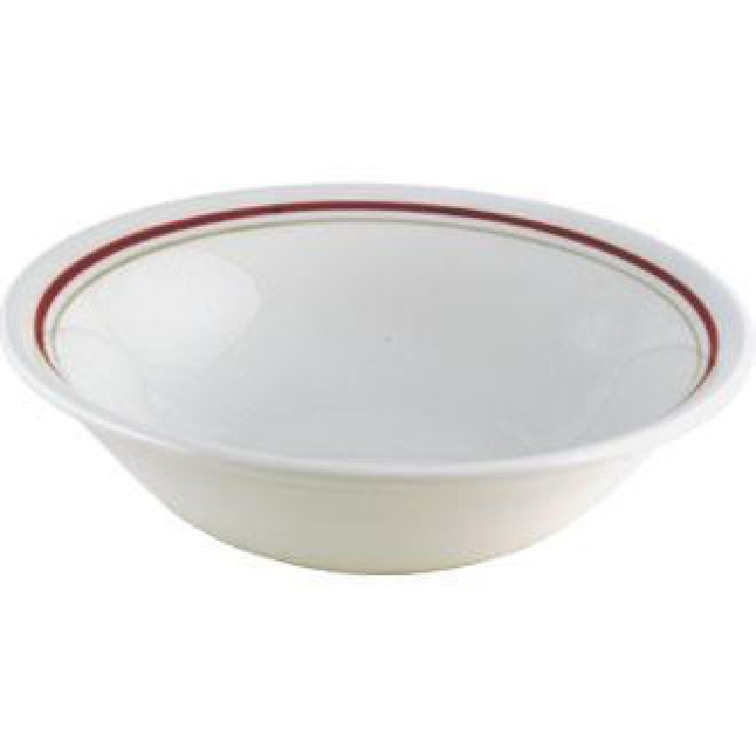 Nova collection by Churchill combines contemporary understated design with functionality and durability combined with Clyde, a simply designed elegant edging of contrasting maroon and grey bands. These 6″ oatmeal bowls have a vitreous body which does not absorb moisture making them more hygienic.