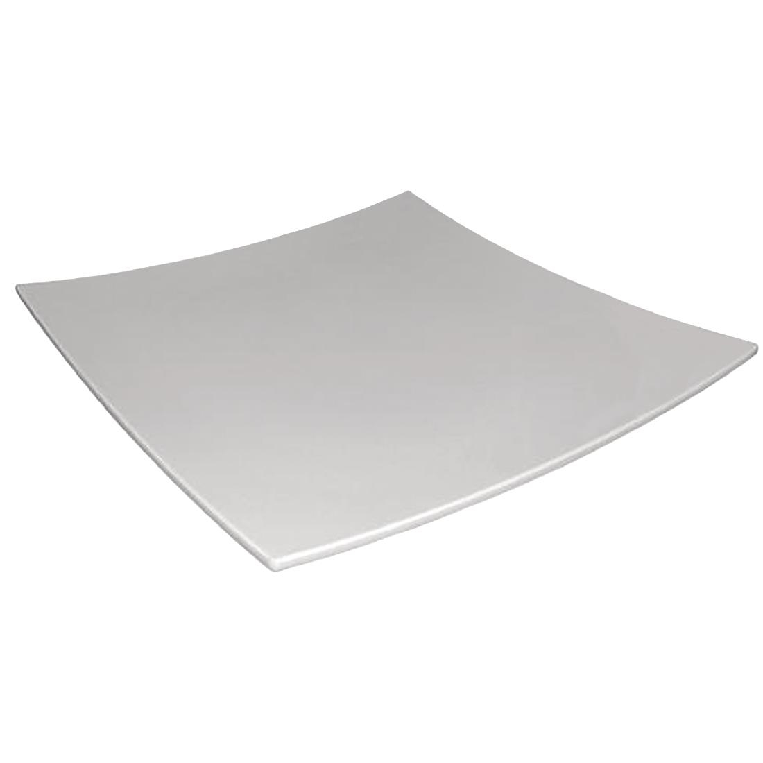 Contemporary white melamine 16″ plate by Kristallon featuring a striking curved square shape to help accentuate the food displayed, suitable for display or service.