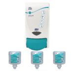 Deb Antibac Soap Dispenser and 3 Unperfumed Antibacterial Foam Hand Soaps 1Ltr