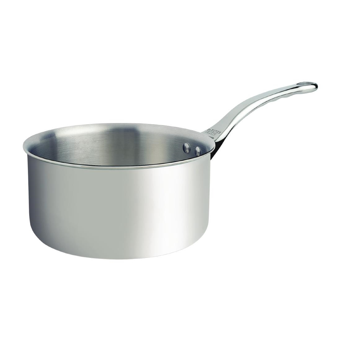 This 14cm frying pan from De Buyer offers you ultimate cooking control, with a multi layered construction providing the benefits of both heat distribution and stylish elegance. The outer stainless steel layer of the pan boasts an attractive mirror polish, whilst the inner aluminium layer ensures instant reaction to temperature changes, making it ideal for browning, searing, grilling and flambéing. A lyonnaise skirt around the outer rim helps food slide onto the plate, whilst the pan is comfortable to hold with a riveted steel handle that fits nicely into the palm of your hand. For a perfect blend of reactive materials and elegant styling from a frying pan, look no further than this fine example from the Affinity range, which is suitable for use on all cooktops including induction hobs.