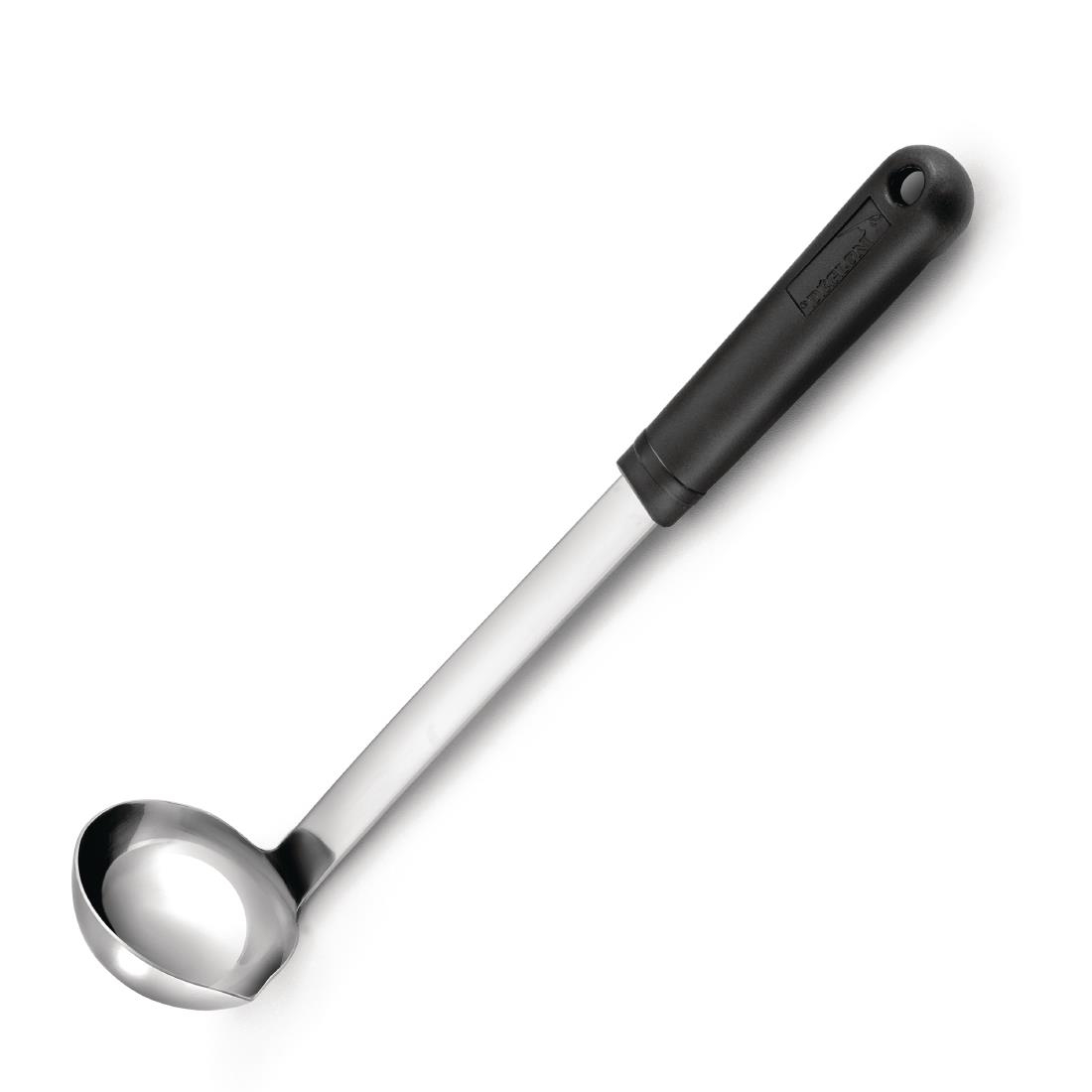 Serve sauce quickly and accurately with the Déglon Glisse sauce ladle from Déglon Sabatier. Boasting an ergonomically designed polypropylene handle, the ladle is comfortable and stable in the hand, helping you plate sauces with expert precision. The handle also features a notch allowing the utensil to rest onto the rim of a bowl or tray, preventing it from slipping into the food. Made from robust stainless steel, the ladle is durable, dishwasher-safe and heat resistant up to 120°C (248°F), making it ideal for use in any busy commercial kitchen. The utensil also features a hole in the handle for convenient storage.