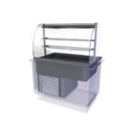 A multipurpose merchandising tool, this Designline Cold Multi Level Deli utilises an inviting elliptical display to attractively yet efficiently promote both chilled and ambient supplies. Functioning 24 hours a day, the overhead gantry provides diffused lighting over the chilled well whilst also housing the energy efficient hydrocarbon condenser, which allows the multi level deli to operate at lower costs and with less environmental waste than most other chilled display units. Besides the 3/1 GN chilled well capacity, two ambient display shelves are placed midway below the gantry to further attract customers through items such as cakes, sandwiches and cheese. GN pans sold separately.Please note: base/counter not included. Special-to-order – this product is non-returnable.