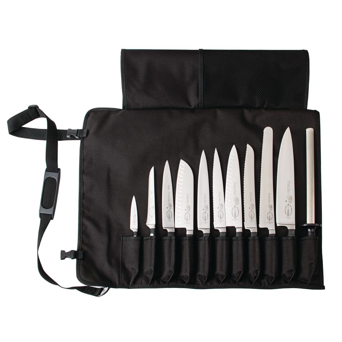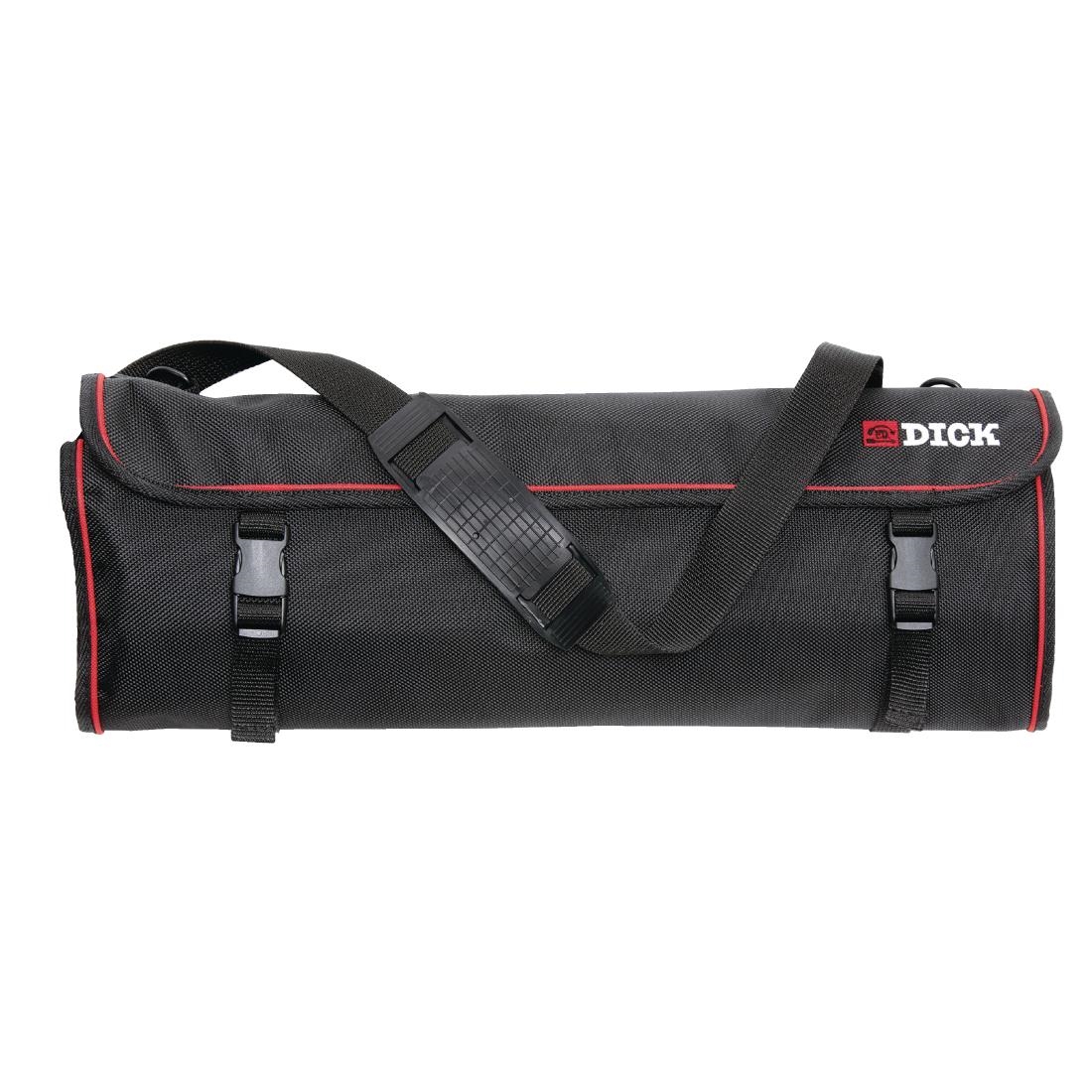 Don’t waste any more time searching for a missing chef’s knife again – keep your most-used blades stored safely in this roll bag from Dick instead, so you’ll always know where they are. With secure slots to hold up to 11 knives, you can carry them with you wherever you go.Perfect for any busy chef who’s always on the move, the heavy-duty textile bag comes with a shoulder strap to ensure you’ll carry your equipment in complete comfort. Two clips can be quickly fastened to keep your knives safe while being carried – even greater peace of mind that your blades are well protected and kept in top condition, ready for use whenever and wherever you need them.